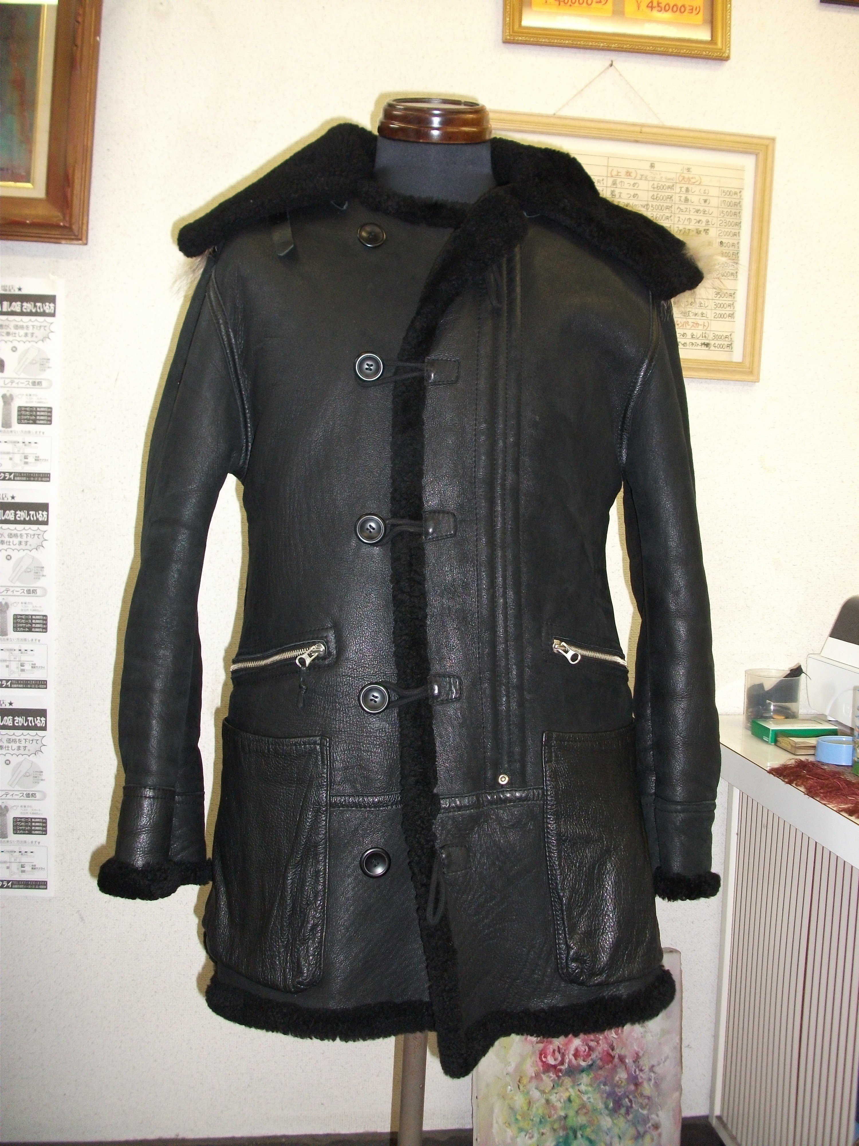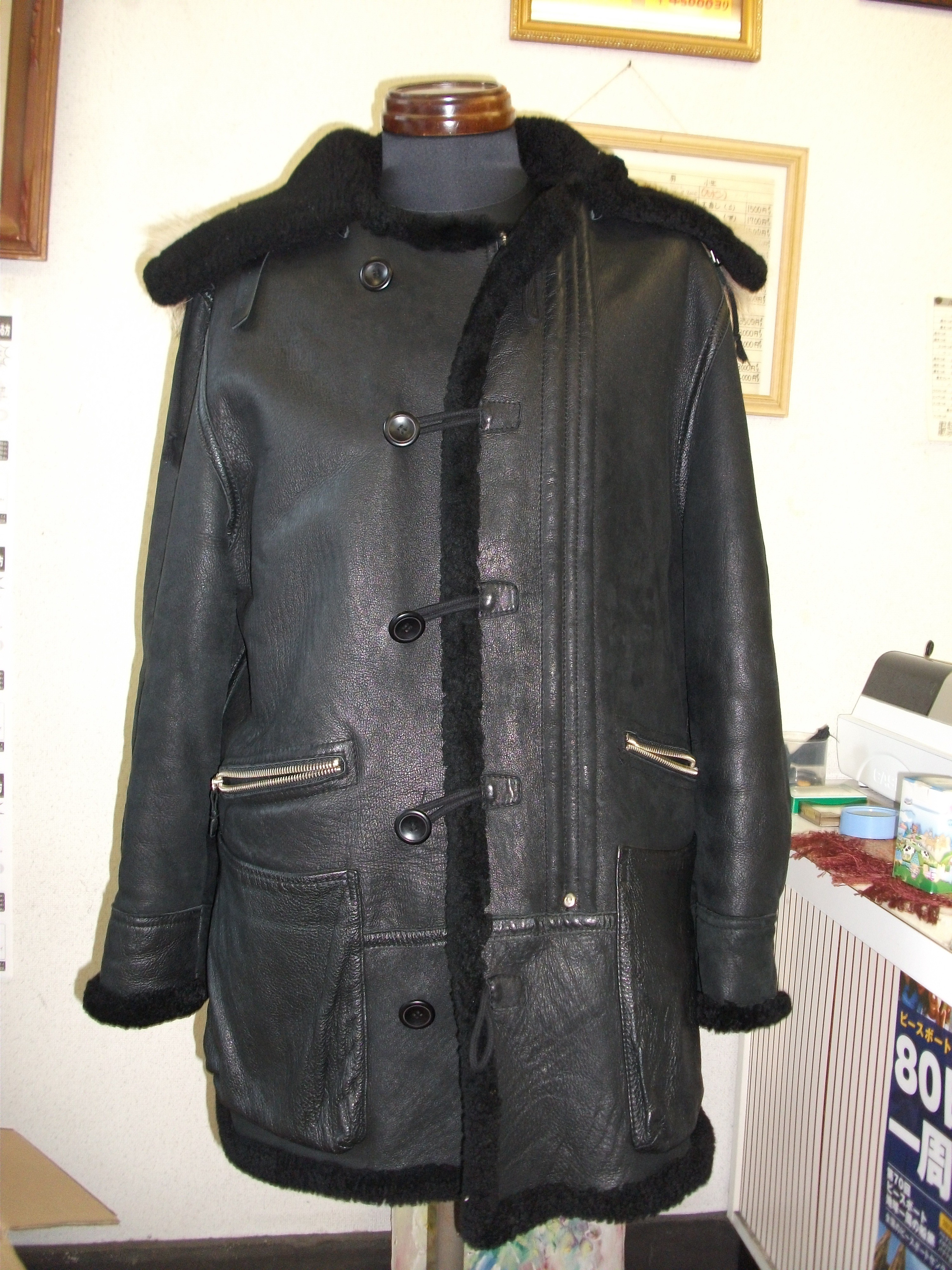 裏がファーで表がレザーの今の時期にはぴったりのコートですね。